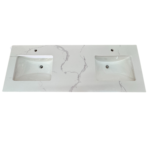 RTI VanitiesMaterial: Quartz Dimensions: 61" Width x 3/4" Thickness x 22" Depth 16" Gap between both sinks. Back and Side Splash Approximately 4" Includes: 1 ...