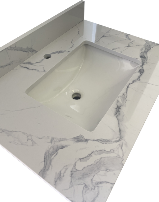 RTI VanitiesMaterial: Quartz Dimensions: 37" Width x 3/4" Thickness x 22" Depth Back and Side Splash Approximately 4" Includes: 1 Back Splash, 1 Side Splash, 1...
